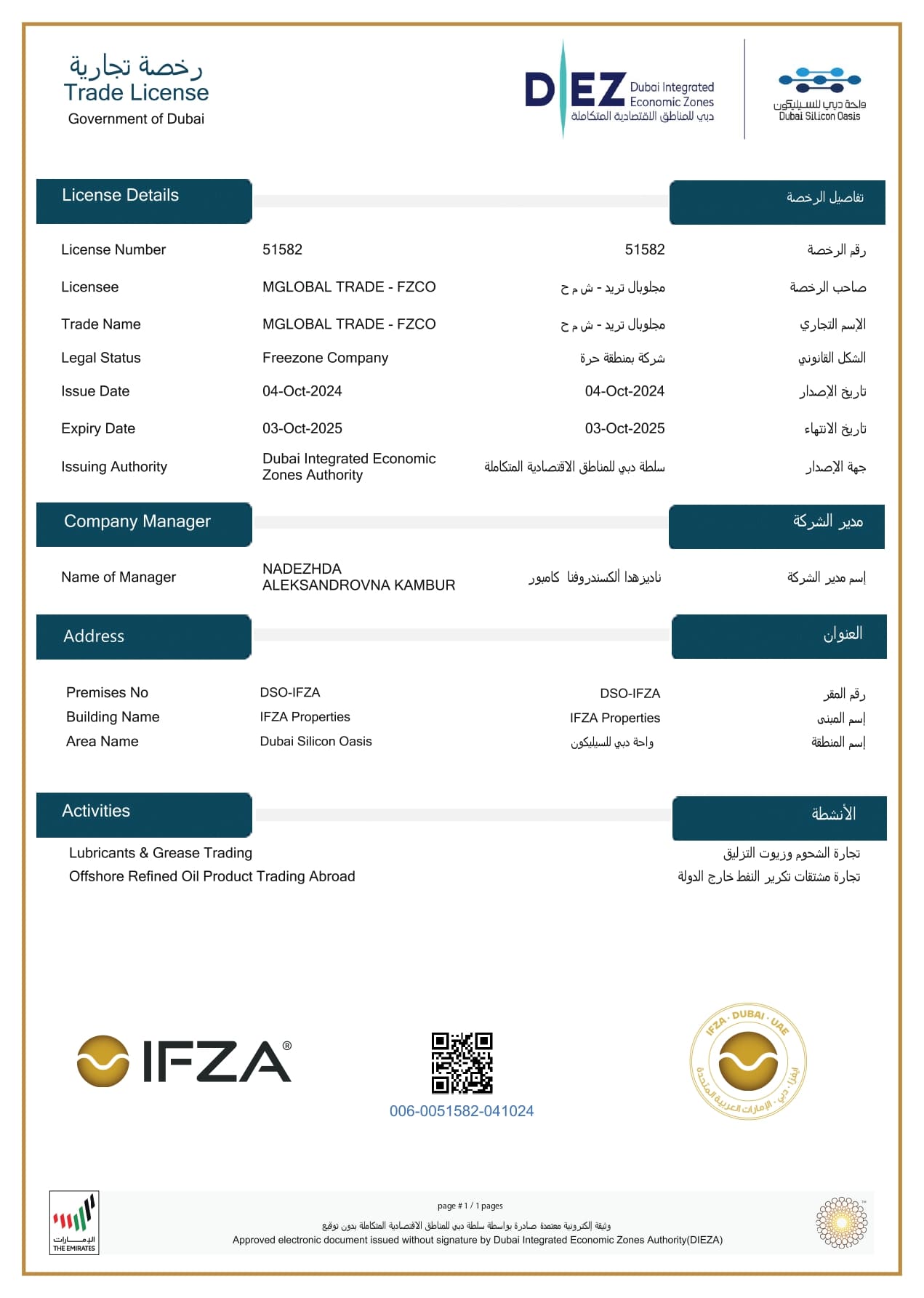 About MGLOBAL TRADE – FZCO is a leading petroleum trading company based in the United Arab Emirates, specializing in the supply and distribution of high-quality petroleum products worldwide. With a strong commitment to excellence, reliability, and sustainability, we serve a diverse clientele, including refineries, industrial enterprises, and energy traders.